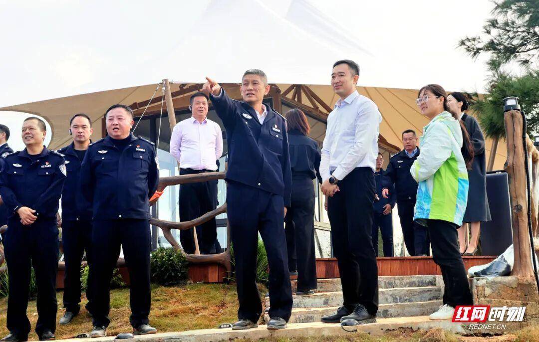 大会前夕,衡山文旅新地标“衡山渡”盛大开街,吸引众多游客前来打卡。衡山公安投入280余人警力,联合“衡山义警”值守路口、维护秩序;女子巡逻队不间断在景区巡查,及时处置突发情况、回应游客诉求,成为另一道靓丽风“警”线。